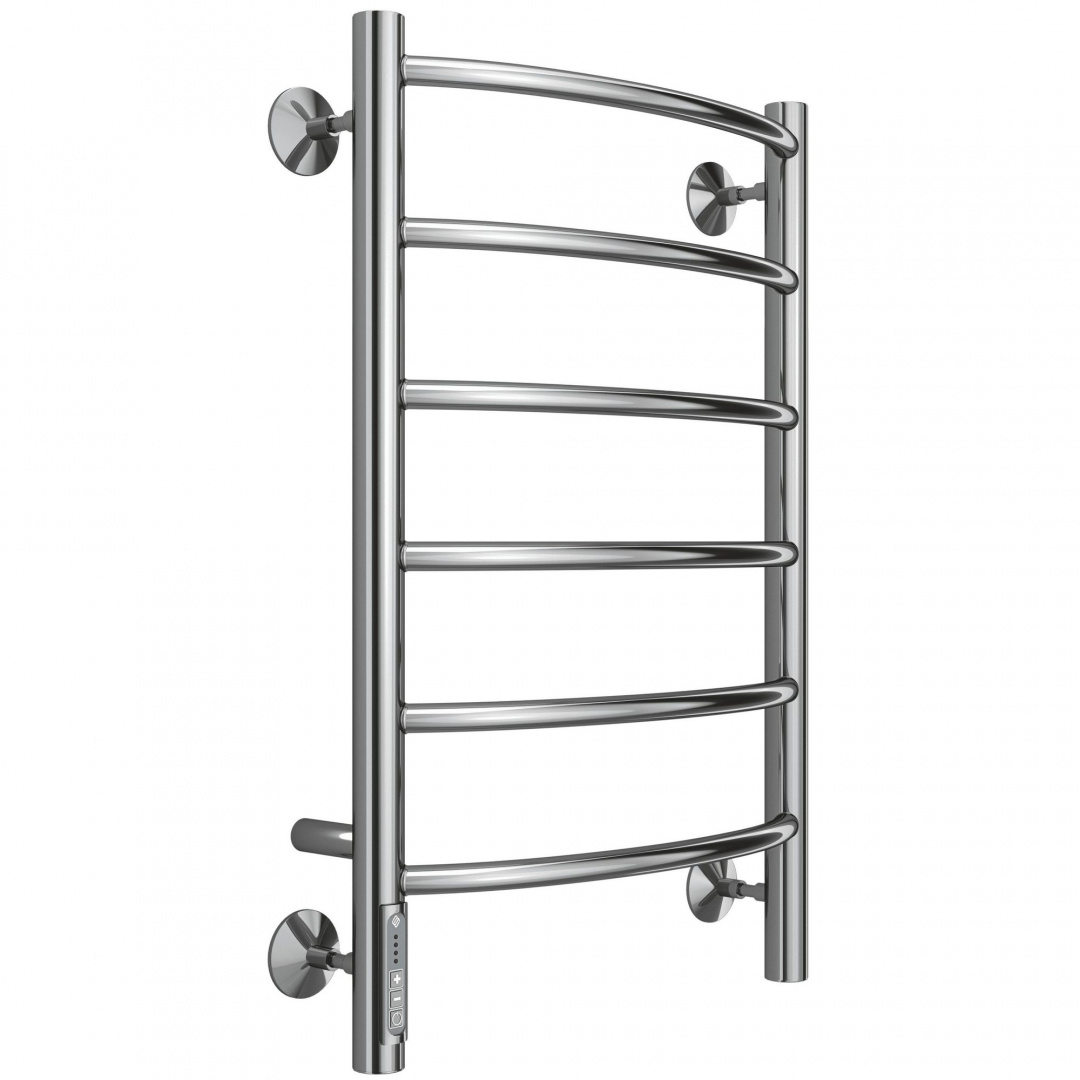 Электрический полотенцесушитель со скрытой электропроводкой и кабель-вилкой. Встроенный электрический диммер на левой части полотенцесушителя. Теплоотдача 117 / 131 / 154 / 173 Вт.